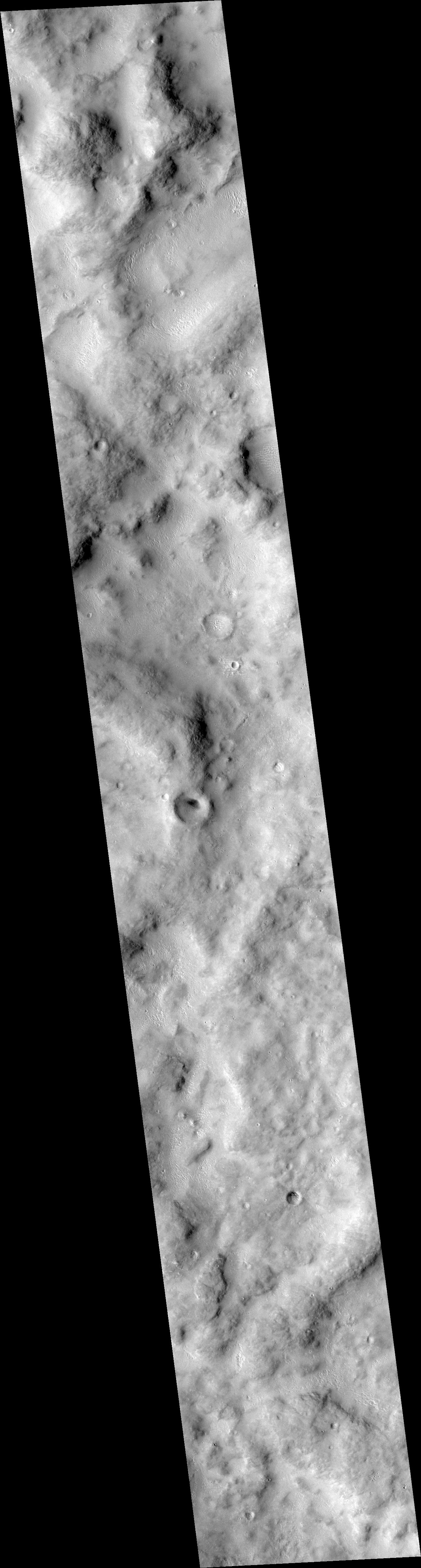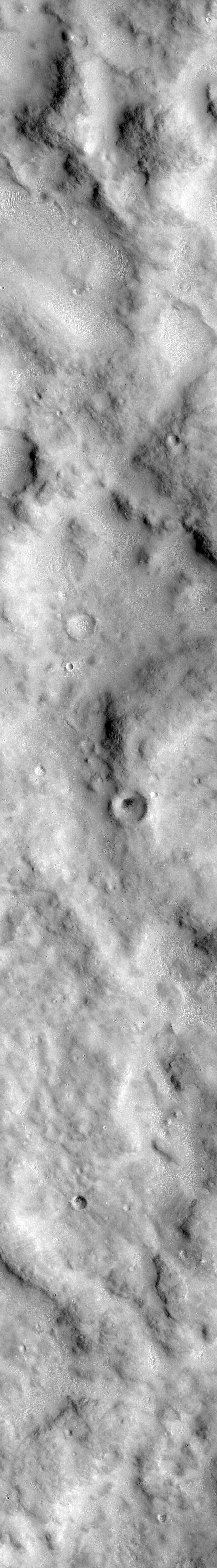 Longitude of image center: 233.52°W Latitude of image center: 0.55°S Scaled pixel width: 4.55 meters Scaled image width: 3.05 km Scaled image height: 21.66 km Solar longitude (Ls): 168.82° Local True Solar Time: 14.89 decimal hours Emission angle: 18.06° Incidence angle: 43.78° Phase angle: 43.55° North azimuth: 92.95° Sun azimuth: 10.40° Spacecraft altitude: 385.53 km Slant distance: 403.30 km |